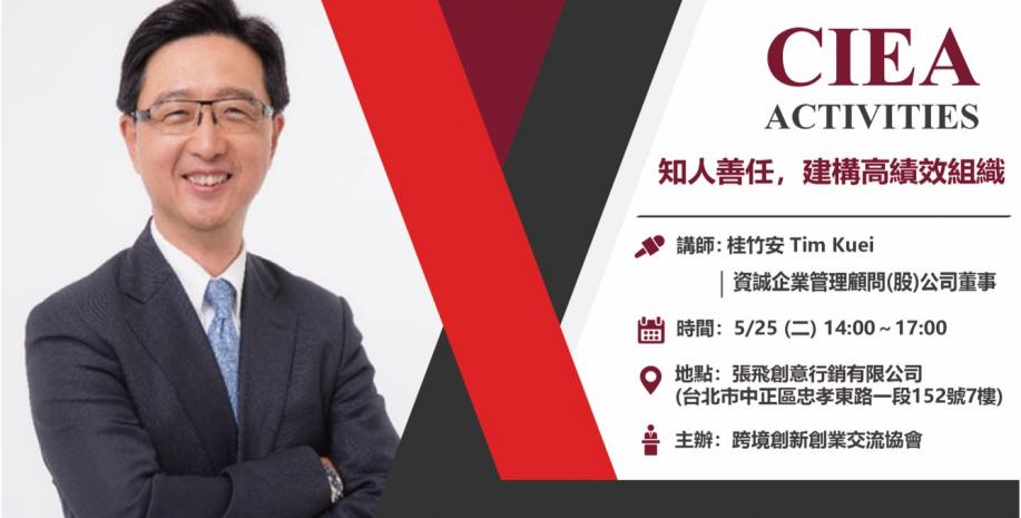 【五月份講座】 將由資誠企業管理顧問(股)公司董事 桂竹安 Tim Kuei擔任講師! 隨著業務與組織規模的拓展,企業員工人數的增加無可難免,如此也增加了人員管理的複雜度。 企業經營者如何從單打獨鬥、開疆闢土的角色轉變成...